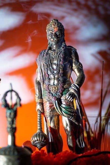 It’s common to see individuals reciting the Chalisa while facing an image or idol of Lord Hanuman, offering flowers and incense. The practice is believed to purify the mind and create a positive atmosphere; The widespread availability of the PDF format facilitates participation for all.